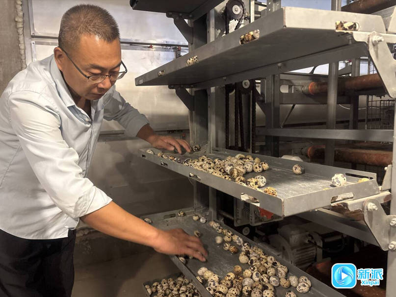 付興鵬檢查鵪鶉產(chǎn)蛋情況。