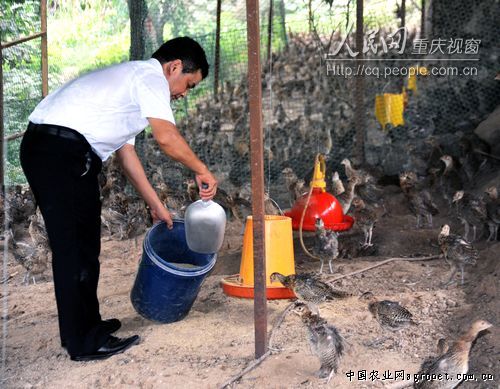 40開外的蒲東成也曾是云陽外出勞務(wù)大軍中的一員,“遠(yuǎn)征”廣東、上海、湖北等地,在高樓林立的建筑工地當(dāng)了近20年農(nóng)民工。隨著年齡的增長和故土情結(jié)的加深,他夢(mèng)想著回到家鄉(xiāng)干一番事業(yè),通過考察、比對(duì)和抉擇,他決定在養(yǎng)殖行業(yè)一試身手。2010年底,他回到云陽縣復(fù)興社區(qū),租賃了一塊移民搬遷后閑置的山坡林地。這里經(jīng)過三峽移民后,有廣闊的生態(tài)資源和創(chuàng)業(yè)空間。說干就干,他與村民們談妥林地租賃方案后,便開始搭棚、布網(wǎng)、建園,嘗試進(jìn)行特種循環(huán)養(yǎng)殖,先后成功養(yǎng)殖了蝎子、蜈蚣、黃粉蟲等藥用昆蟲,然后依托蟲類食物鏈,引進(jìn)野雞、珍珠雞、貴妃雞等珍禽養(yǎng)殖。目前,他的野雞蛋、珍珠肉雞、貴妃雞及相關(guān)制品陸續(xù)成為市場(chǎng)搶手貨,鮮供到萬州、重慶、宜昌等地客商和餐館、酒店?;臈壛值仞B(yǎng)殖規(guī)模從15畝擴(kuò)建到現(xiàn)在23.5畝,通過勤奮+智慧已造就30萬元“變廢為寶”新神話。