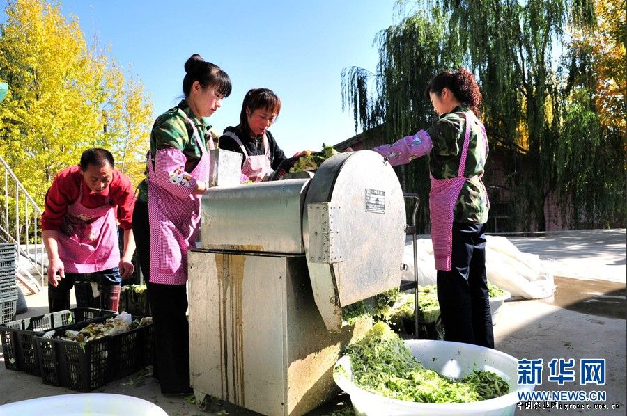 10月17日,工人們在進(jìn)行尾菜粉碎處理。甘肅蘭州市榆中縣是高原夏菜的主產(chǎn)區(qū),在年外銷蔬菜10億多公斤的同時,該地區(qū)的尾菜污染問題十分嚴(yán)重。目前,蘭州市工業(yè)研究院和蘭州一家蔬菜保鮮公司共同完成了利用黃粉蟲(俗稱“面包蟲”)過腹轉(zhuǎn)化技術(shù)實(shí)現(xiàn)尾菜無害化處理項(xiàng)目,有效解決了這一問題,其生產(chǎn)的黃粉蟲高蛋白食品深受市場歡迎。