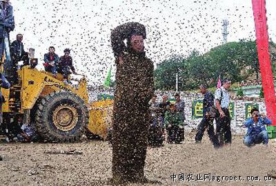 在昨日的掛牌儀式上,該合作社的負(fù)責(zé)人、被譽(yù)為 “世界蜂王”的養(yǎng)蜂人張偉,為現(xiàn)場(chǎng)的觀眾奉上了他曾經(jīng)打破過(guò)世界紀(jì)錄的“蜂人秀”表演。