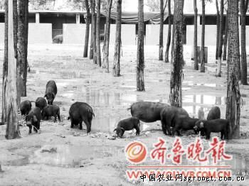 9日上午,記者來到即墨市金口鎮(zhèn)的青島華外金口綜合生態(tài)園,一進(jìn)入生態(tài)園便看到成群的藏香豬在樹林里覓食,樹林里滿是西紅柿、茄子、蒲公英等蔬菜和草藥。生態(tài)園的工作人員介紹,這些是藏香豬的食物,除了吃自家生態(tài)園種的蔬菜和草藥之外,藏香豬還吃一些蟲草、松臻等特制的飼料。