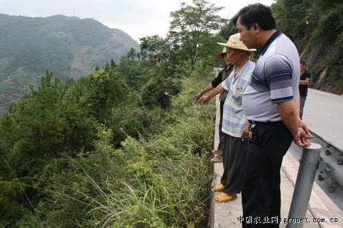 8月2日上午,筆者隨巫峽鎮(zhèn)分管產(chǎn)業(yè)發(fā)展的副鎮(zhèn)長前往中蜂出事現(xiàn)場龍王淌調(diào)查,在奉節(jié)縣中梁村4社村民的引領(lǐng)指點(diǎn)下,看了已被處理殘值的現(xiàn)場,群眾見到原16箱中蜂置于公路護(hù)欄外保墻50公分的平臺(tái)上,既不妨礙交通,也不影響形象。公路保墻下約5米處的草木叢被壓成一條2米寬的凹槽,系蜂箱被掀砸的位置。筆者在現(xiàn)場還拾到一片蜂巢,拍了照。