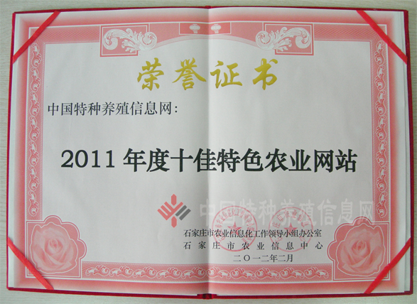 中國(guó)特種養(yǎng)殖信息網(wǎng)榮獲2011年度十佳特色農(nóng)業(yè)網(wǎng)站(圖文)