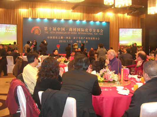 第十屆中國·尚村國際皮草交易會于2010年1月12日至15日在北京國家會議中心舉辦。本次交易會由河北省人民政府、中國輕工業(yè)聯(lián)合會、中國皮革協(xié)會、河北省毛皮產(chǎn)業(yè)協(xié)會主辦,滄州市人民政府、肅寧縣人民政府和肅寧縣裘革行業(yè)協(xié)會承辦。 交易會期間,肅寧縣組織22家重點毛皮企業(yè)在北京國際會展中心布置了肅寧精品服裝展區(qū),舉行服裝展示展銷,并舉辦了中國裘皮之都——河北肅寧毛皮產(chǎn)業(yè)發(fā)展推介會等活動。