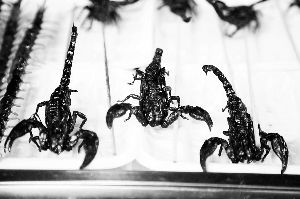 “哎呀,我變成一只大公雞了。”小唐將一只蜘蛛咀嚼幾下吞進(jìn)肚里,接著又吞下蝎子,路人無(wú)不驚愕地看著他,眼睛睜成了雞蛋。他的女朋友驚訝地說(shuō):“這種東西你也敢吃?”但他像公雞一樣伸伸脖子:“有人賣,就有人買。這玩意好吃。”