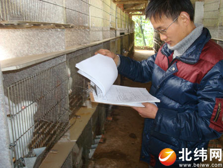 在兩幢木架房背后的山包處,幾間造型別致的磚房展現(xiàn)在眼前,李萬勇指著磚房說:“這就是我的養(yǎng)兔場(chǎng)!”走進(jìn)兔場(chǎng),里面的建設(shè)好氣派:800個(gè)兔舍全部用花崗石板材砌成,板材光亮照得見人影,寬敞的過道被節(jié)能燈照得通明……“兔子與人一樣,生存環(huán)境好,不僅少得病,而且長(zhǎng)得快,我已出售了15000多只兔子,死亡率不超過5%。”說起自己一手設(shè)計(jì)和建造的養(yǎng)兔場(chǎng),李萬勇欣喜萬分,連稱“苦中有樂”。