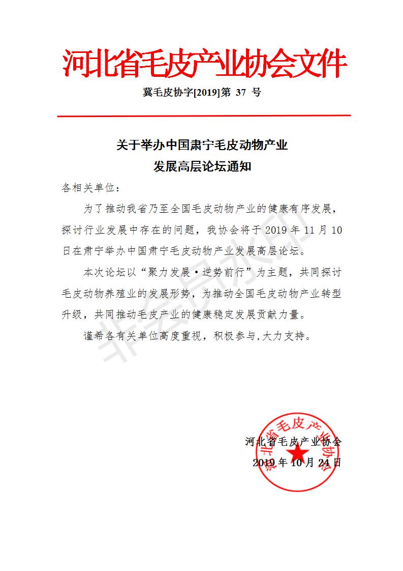 關(guān)于舉辦中國肅寧毛皮動物產(chǎn)業(yè)發(fā)展高層論壇通知