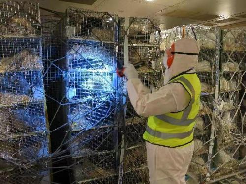 海關(guān)關(guān)員對種用水貂進(jìn)行臨床檢查