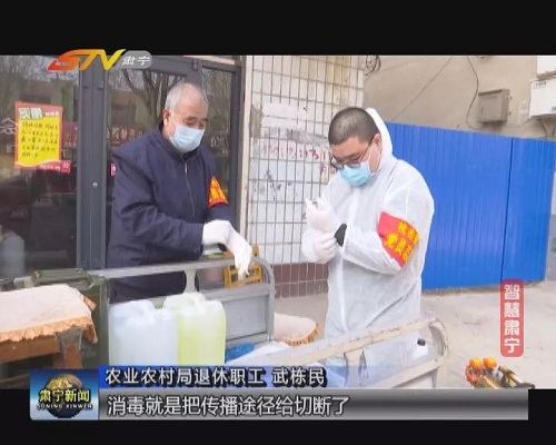 農(nóng)業(yè)農(nóng)村局退休職工 武棟民:這個(gè)冠狀病毒發(fā)生以后,傳染病有三大要素:一個(gè)是傳染源,一個(gè)是傳播途徑,一個(gè)是易感動(dòng)物,咱們就是通過(guò)消毒,消毒就是把傳播途徑給切斷了,消滅這個(gè)傳染源消滅這個(gè)病毒。