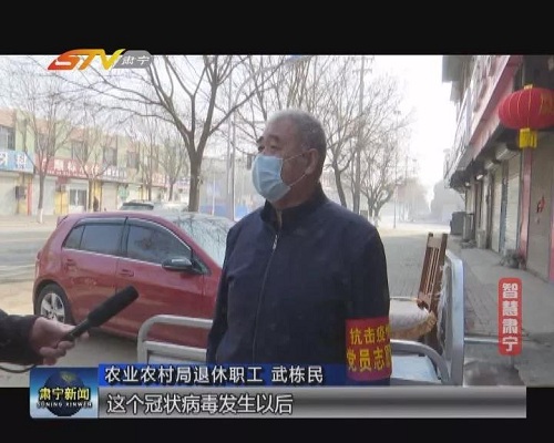 農(nóng)業(yè)農(nóng)村局退休職工 武棟民:給大家義務(wù)消毒,作為一名共產(chǎn)黨員,應(yīng)該向前沖,做好防控,家里孩子老婆一塊,我說(shuō)咱們都支持咱們這個(gè)疫情防控工作。