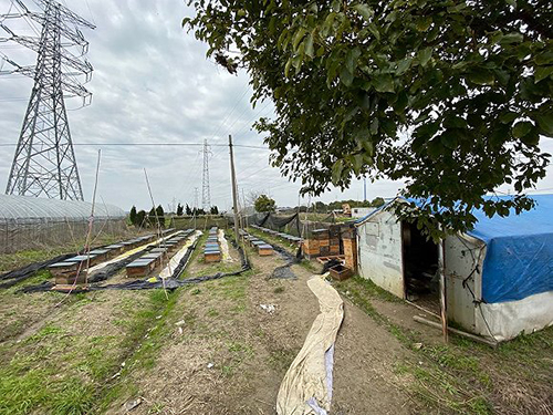 屠忠誠的蜂箱和棚屋。圖片來源:張欽