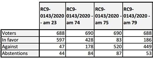 對于《應(yīng)對COVID-19大流行及其后果的歐盟協(xié)調(diào)行動》各項修正案,有議員支持也有議員反對,于是按照歐盟議會議事規(guī)則進(jìn)入了投票程序。當(dāng)?shù)貢r間2020年4月15日晚間進(jìn)行了投票。其中,79號修正案的投票結(jié)果是:186票贊成、449票反對、53票棄權(quán)。該修正案沒有能獲得通過。
