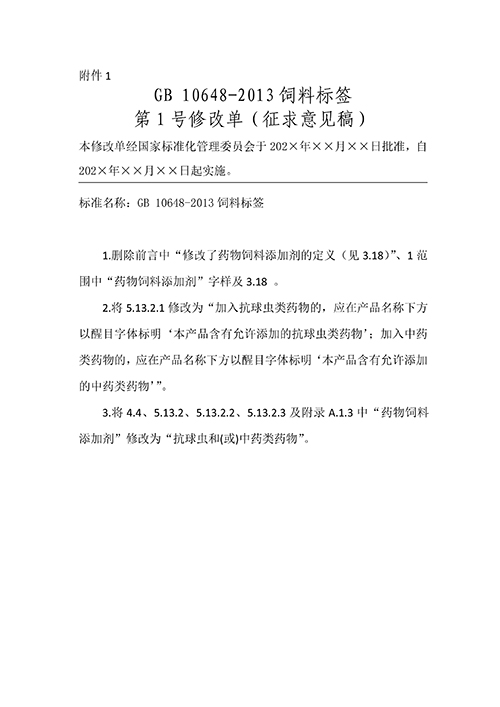 1.GB 10648-2013飼料標(biāo)簽 第1號修改單(征求意見稿)
