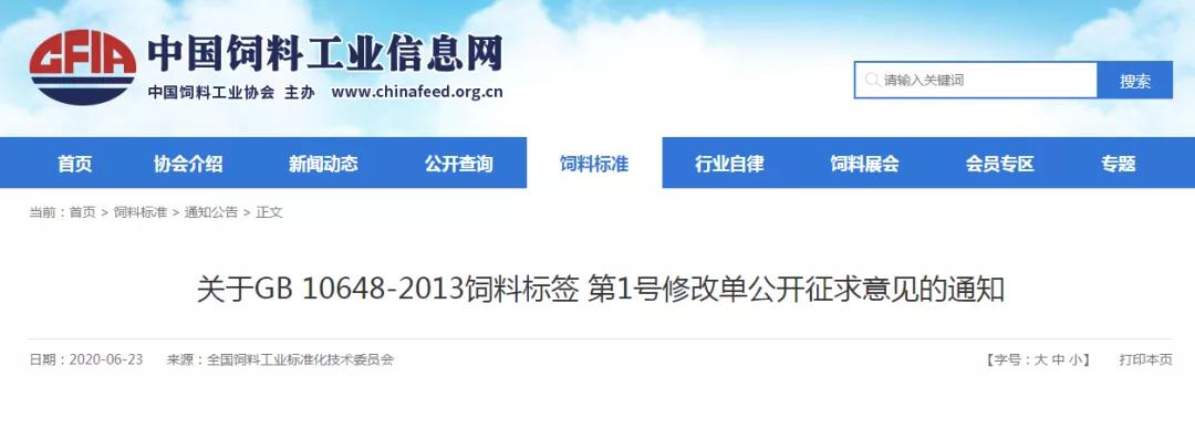 關(guān)于GB 10648-2013飼料標(biāo)簽 第1號修改單公開征求意見的通知