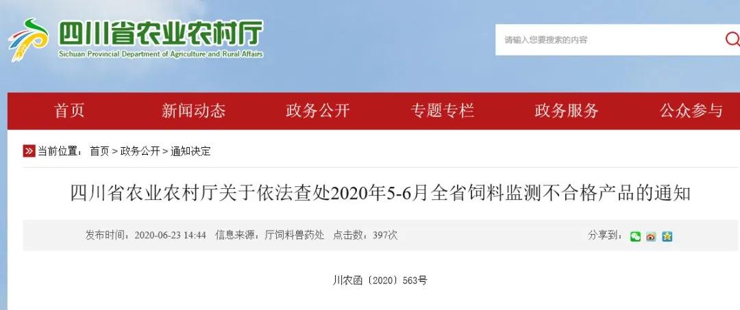 四川省農(nóng)業(yè)農(nóng)村廳關(guān)于依法查處2020年5-6月全省飼料監(jiān)測不合格產(chǎn)品的通知