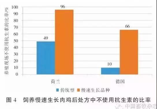 第二,改善畜舍環(huán)境條件,提升動(dòng)物福利,減輕應(yīng)激程度。如溫度、通風(fēng)、密度等方面的改進(jìn)和調(diào)整等。比如,荷蘭從2015年開(kāi)始傾向于飼養(yǎng)慢速生長(zhǎng)的肉雞,同時(shí)要求把飼養(yǎng)密度降低到生產(chǎn)活重30 kg/㎡(表2)。在這樣的背景下,疾病的壓力小,現(xiàn)場(chǎng)不需用藥的可能性大幅度提升(圖4)。