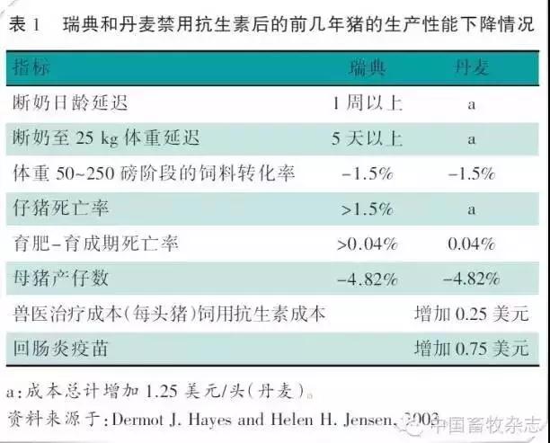 那么,歐洲飼料禁抗后,養(yǎng)殖生產(chǎn)性能和抗生素用量的變化如何呢?首先是先行者瑞典,在1986年禁抗后的前幾年,以豬為例,平均日增重下降,料肉比提升,死亡率增加,斷奶日齡不得不延遲1周。其次,丹麥實(shí)施飼料禁抗后,豬場(chǎng)在生長(zhǎng)育肥階段的成績(jī)影響不大,據(jù)統(tǒng)計(jì),62%的豬場(chǎng)這個(gè)階段的日增重和死亡率無(wú)明顯變化,只有12%的環(huán)境條件差的豬場(chǎng)出現(xiàn)了問(wèn)題久久不能解決,而另外26%的豬場(chǎng)經(jīng)過(guò)幾個(gè)月的調(diào)整,生產(chǎn)成績(jī)也跟上來(lái)了。但仔豬階段產(chǎn)生的問(wèn)題和困難很大,表現(xiàn)為死亡率的提高和日增重的降低,母豬年提供斷奶仔豬數(shù)(PSY)下降等(見(jiàn)表1)。除了豬場(chǎng)生產(chǎn)性能的下降,現(xiàn)場(chǎng)抗生素的用量略有增加