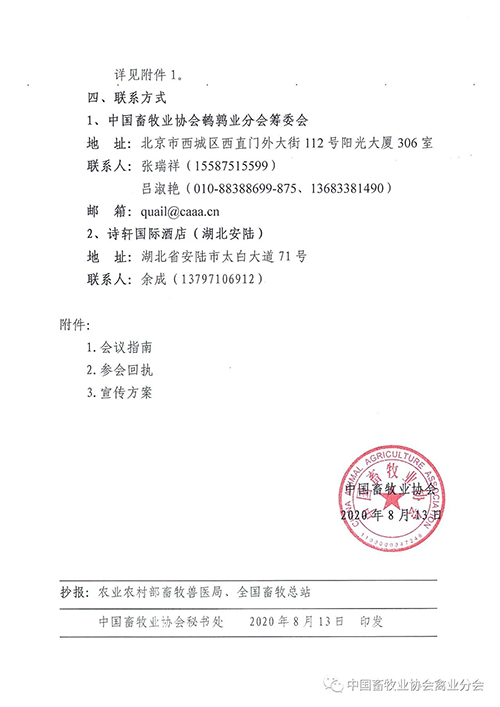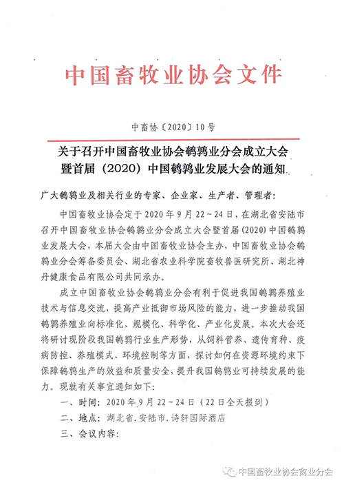 關(guān)于召開中國畜牧業(yè)協(xié)會(huì)鵪鶉業(yè)分會(huì)成立大會(huì) 暨首屆(2020)中國鵪鶉業(yè)發(fā)展大會(huì)的通知
