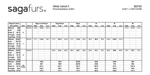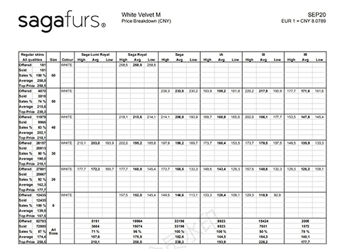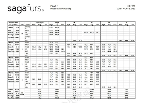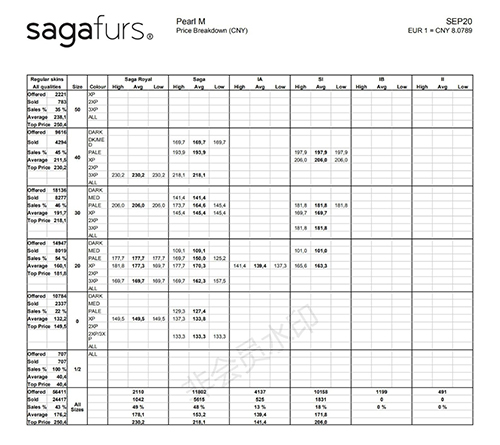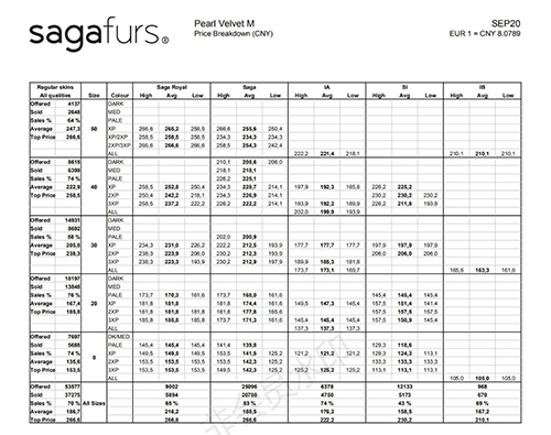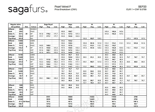 ?總的來說,所有供應(yīng)皮張幾乎全部售出。主要買家來自中國,同時也得到了俄羅斯買家的大力支持。與歐洲最近的水平相比,10.5萬張珍珠公皮以100%的銷售率售出。