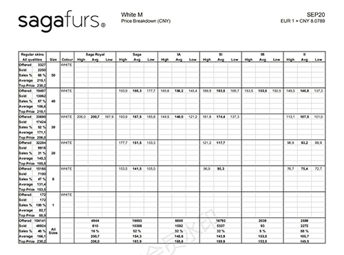 歐洲白色母貂皮售出了30%,而北美的白色母貂皮則遇到了較大的銷售阻力。