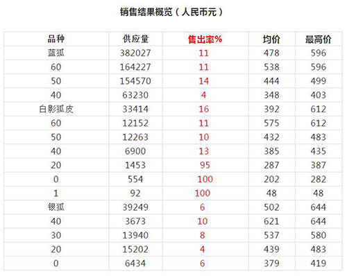 芬蘭9月拍賣(mài)會(huì)藍(lán)狐、白狐、銀狐皮銷(xiāo)售結(jié)果