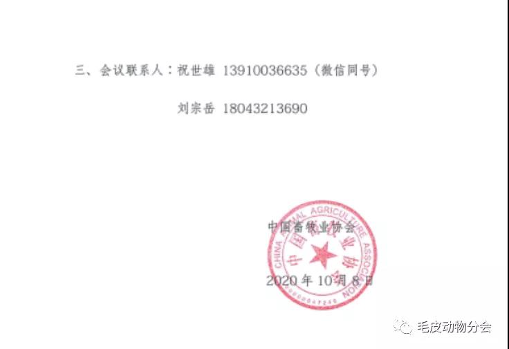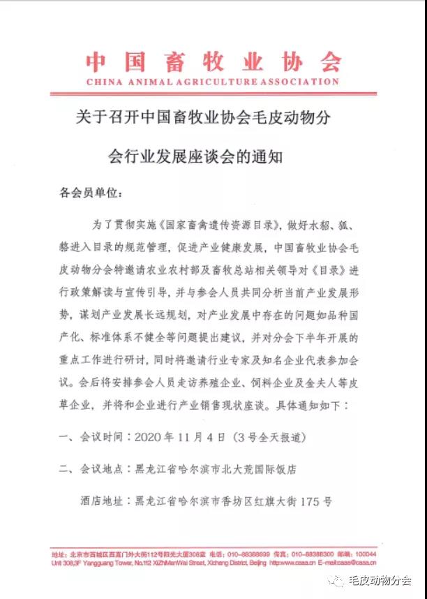 關(guān)于召開(kāi)中國(guó)畜牧業(yè)協(xié)會(huì)毛皮動(dòng)物分會(huì)行業(yè)發(fā)展座談會(huì)的通知