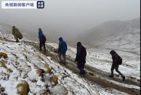 △工作人員在洛隆達(dá)龍鄉(xiāng)色底村考察時(shí)突遇大雪