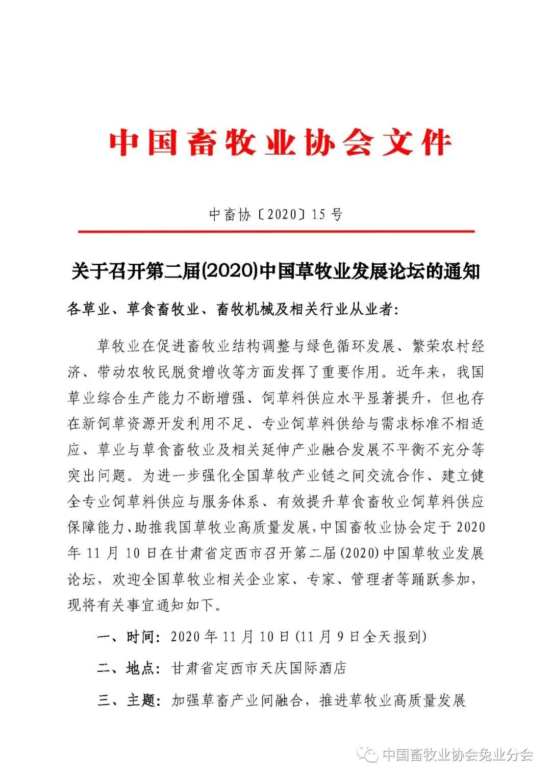 關(guān)于召開第二屆(2020)中國(guó)草牧業(yè)發(fā)展論壇的通知