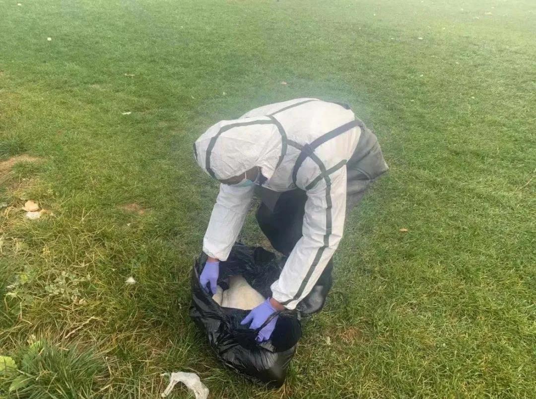 工作人員準備對病死天鵝作無害化處理(圖|新京報)