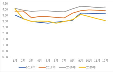 從鮮鴿蛋的月度平均價(jià)格看,本年度前三季度價(jià)格整體上與2017年相當(dāng),遠(yuǎn)低于2018和2019年。但四季度的價(jià)格更差,為近三年最低價(jià),甚至低于2017年。鴿蛋的價(jià)格低迷與禽產(chǎn)品供大于求的整體行情有關(guān)。