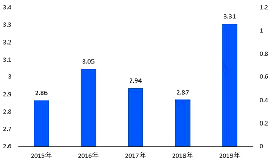 表1: 2015-2019年全國(guó)牧業(yè)總產(chǎn)值情況(單位:萬(wàn)億元)