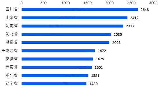 2019年牧業(yè)總產(chǎn)值TOP10的畜牧大省分別是:四川省、山東省、河南省、河北省、湖南省、黑龍江省、安徽省、云南省、湖北省、遼寧省。與2018相比,四川省超過(guò)山東省成為冠軍,達(dá)到2648億元;河南河北不變,位列第三、四名,云南省從2018年的第11位前進(jìn)三位排名第8,內(nèi)蒙古自治區(qū)跌出前10,安徽省前進(jìn)兩位列為第7,黑龍江下降一位列為第6,湖北省、遼寧省退后兩位位居第9和第10位。