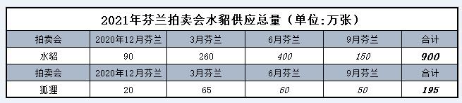 2021拍賣會(huì)水貂供應(yīng)量數(shù)值預(yù)估(按日程先后排列)