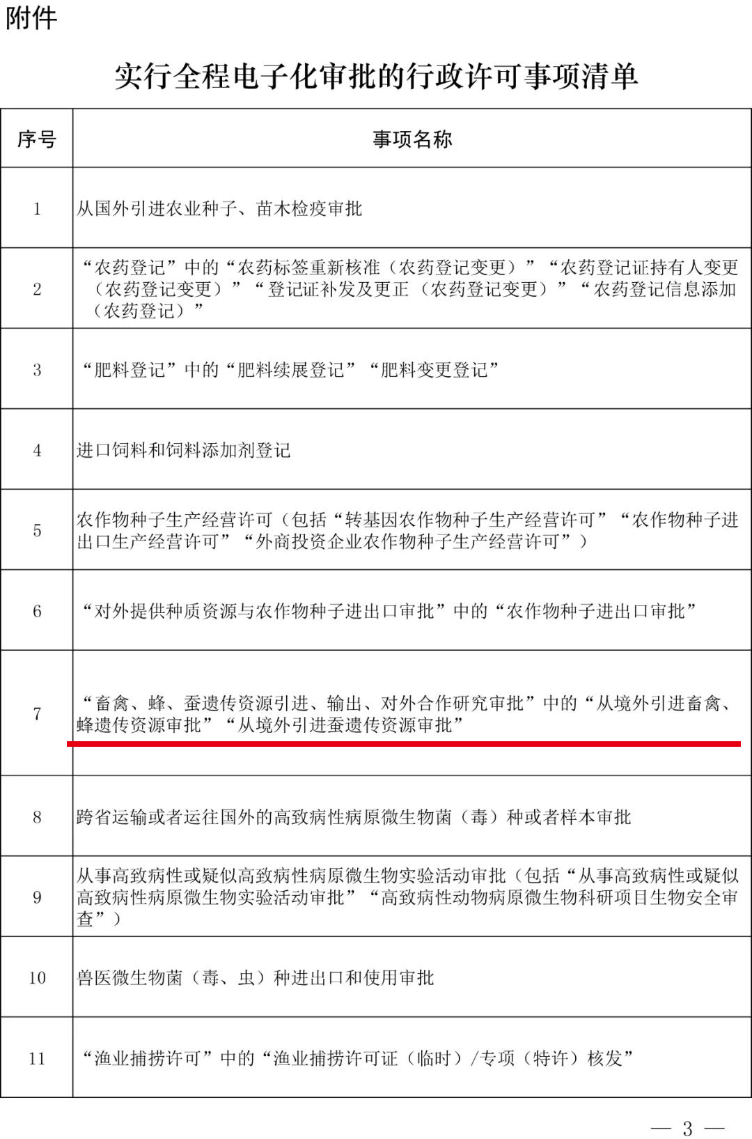 農(nóng)業(yè)農(nóng)村部:“從境外引進畜禽、蜂遺傳資源審批”等11項行政許可事項實現(xiàn)電子化審批