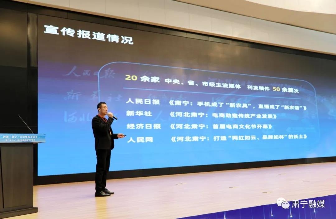 ▲肅寧縣電商協(xié)會會長宋從偉發(fā)布河北(肅寧)首屆電商文化節(jié)數(shù)據(jù)
