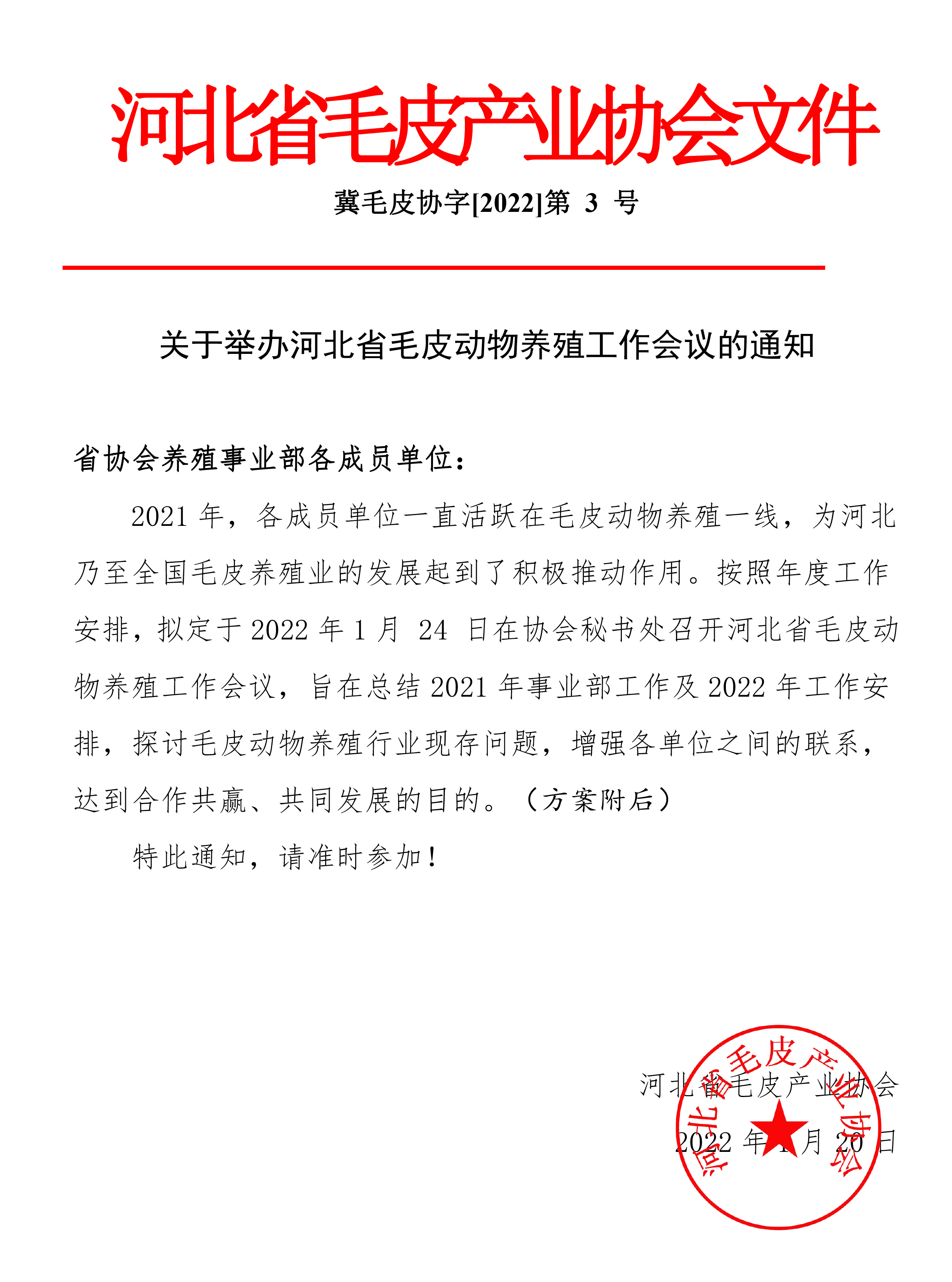 河北省毛皮動(dòng)物養(yǎng)殖工作會(huì)議方案