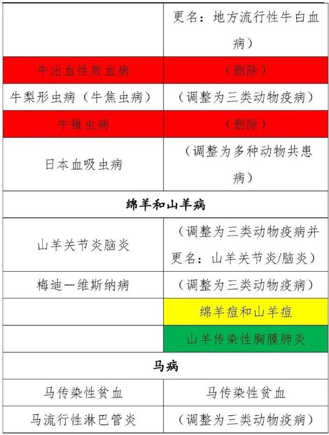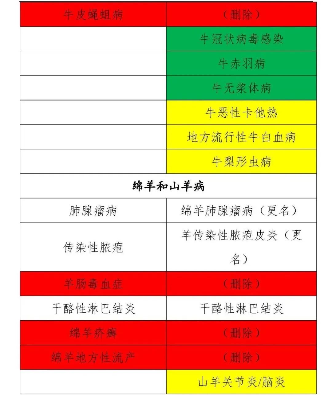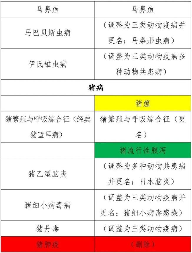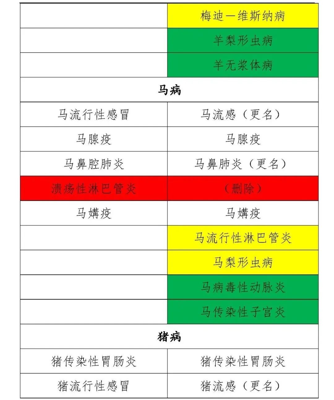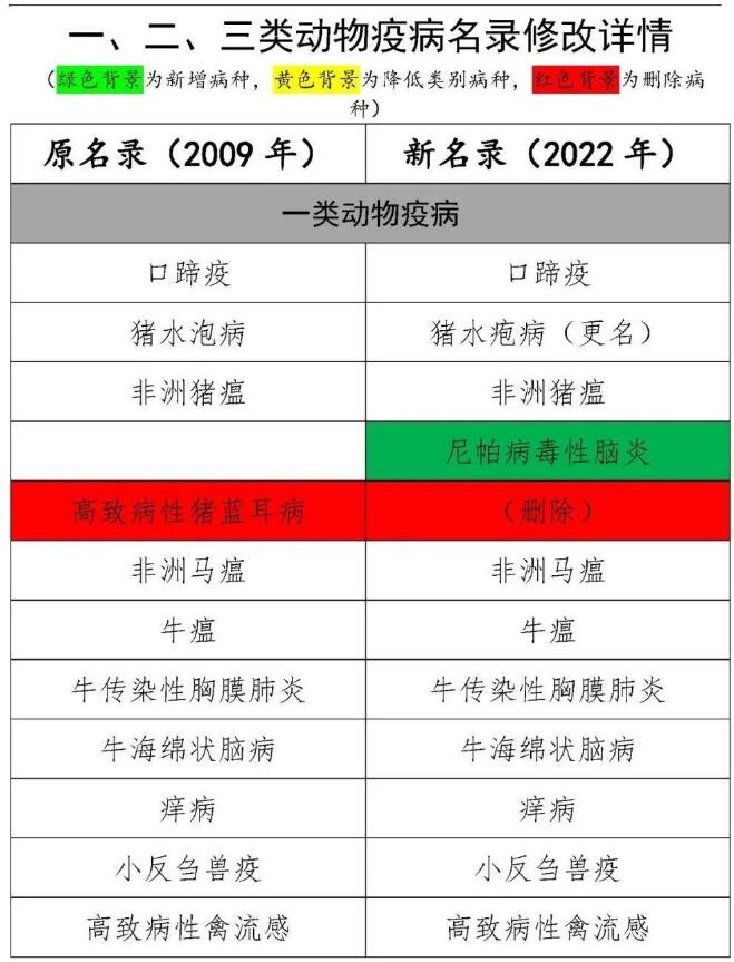 3、一、二、三類動(dòng)物疫病名錄修改詳情