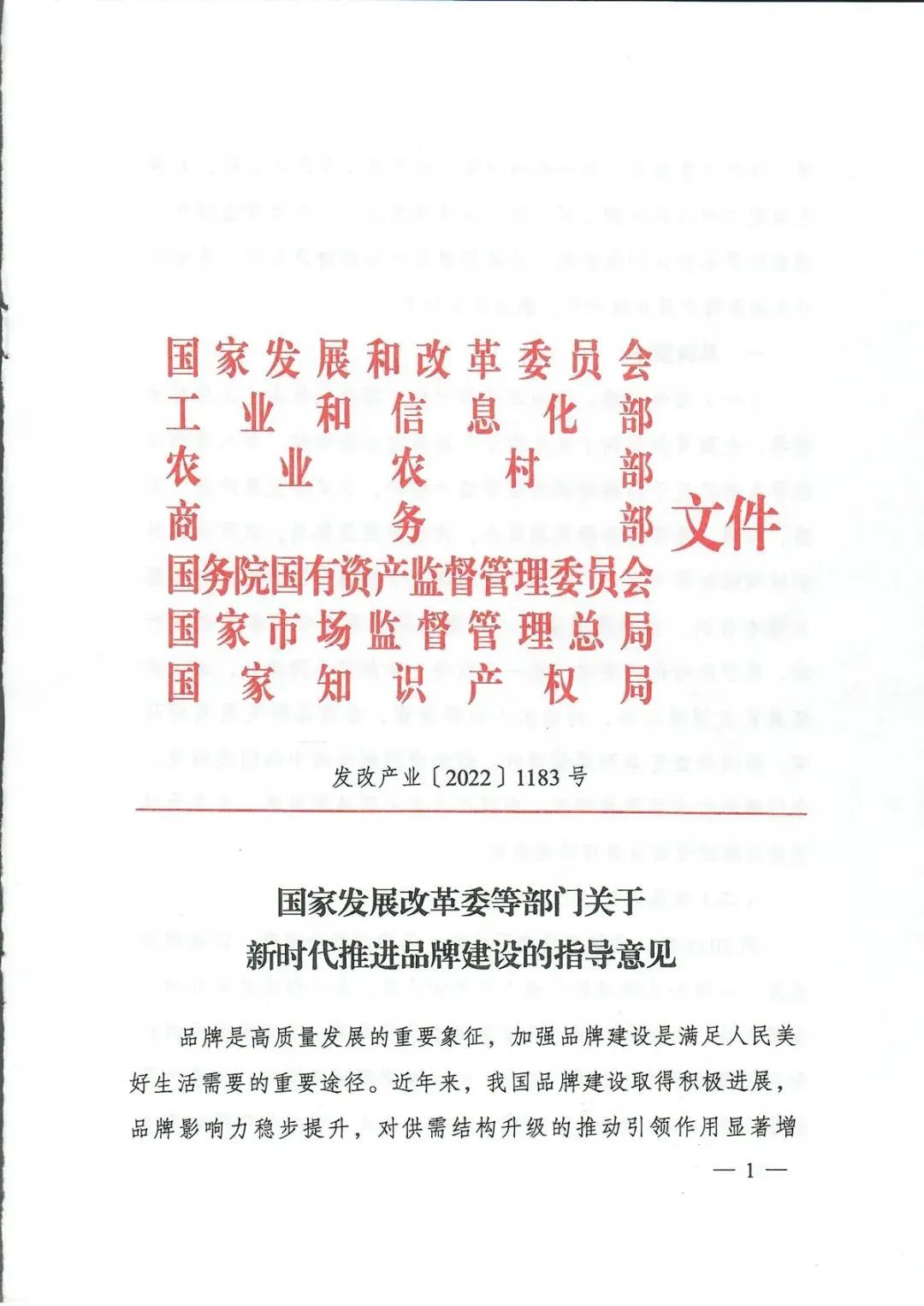 國家發(fā)展改革委等部門發(fā)布《關(guān)于新時(shí)代推進(jìn)品牌建設(shè)的指導(dǎo)意見》
