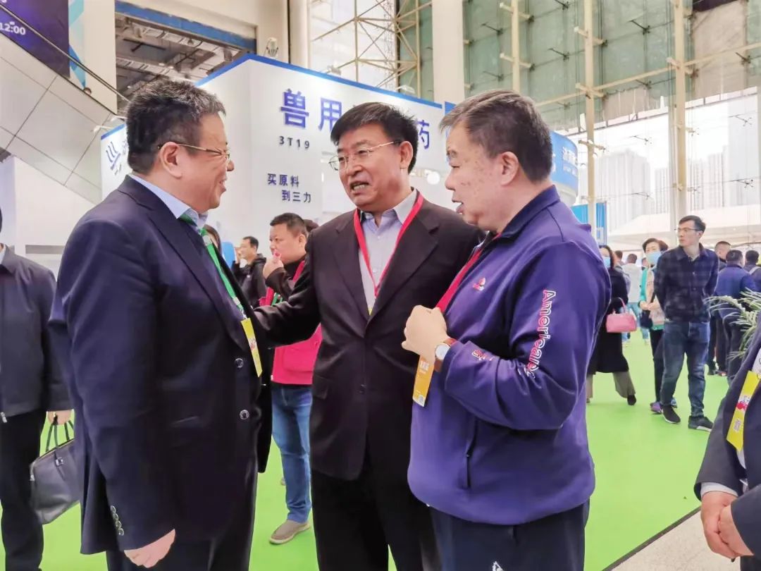 齊魯動(dòng)保展位上擺放了公司化藥和疫苗多種重點(diǎn)產(chǎn)品,同時(shí)有專業(yè)的技術(shù)人員負(fù)責(zé)講解,吸引了眾多養(yǎng)殖朋友與采購(gòu)商等行業(yè)同仁的關(guān)注。不僅迎來(lái)了山東省畜牧獸醫(yī)局黨組書(shū)記、局長(zhǎng)于永德和山東畜牧協(xié)會(huì)秘書(shū)長(zhǎng)逯巖的蒞臨指導(dǎo),還有媒體朋友的到訪。