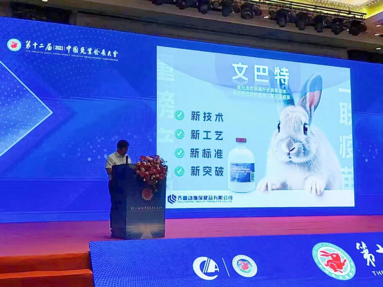 齊魯動(dòng)保兔出血癥病毒桿狀病毒載體、多殺性巴氏桿菌二聯(lián)滅活疫苗(文巴特)在大會開幕式中國家兔產(chǎn)業(yè)新品權(quán)威發(fā)布環(huán)節(jié)隆重發(fā)布上市。文巴特依靠公司成熟的懸浮培養(yǎng)和規(guī)?;囵B(yǎng)工藝,秉持懸浮基因、滴滴匠心的品質(zhì),為家兔養(yǎng)殖業(yè)保駕護(hù)航。