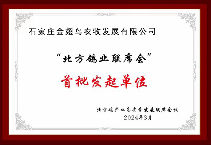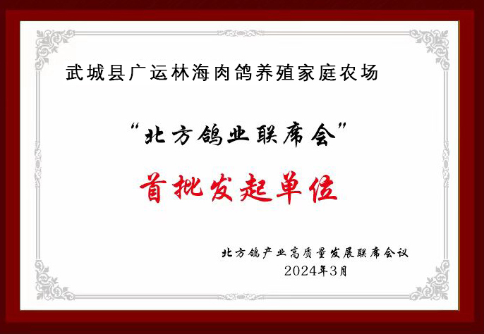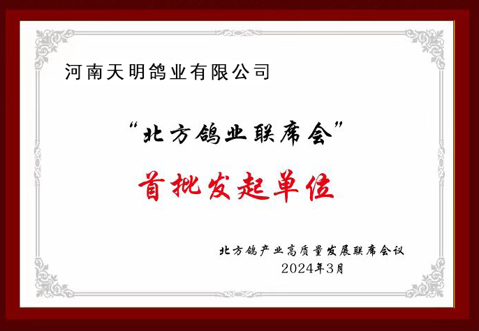 2024年3月17日,在“山河四省”鴿業(yè)發(fā)展大會暨第九屆肉鴿交流研討會上,北方鴿產(chǎn)業(yè)高質(zhì)量發(fā)展聯(lián)席會議向河南天成鴿業(yè)有限公司等14家企業(yè)首批發(fā)起單位的授牌,標志著北方鴿產(chǎn)業(yè)高質(zhì)量發(fā)展聯(lián)席會議機制正式形成。