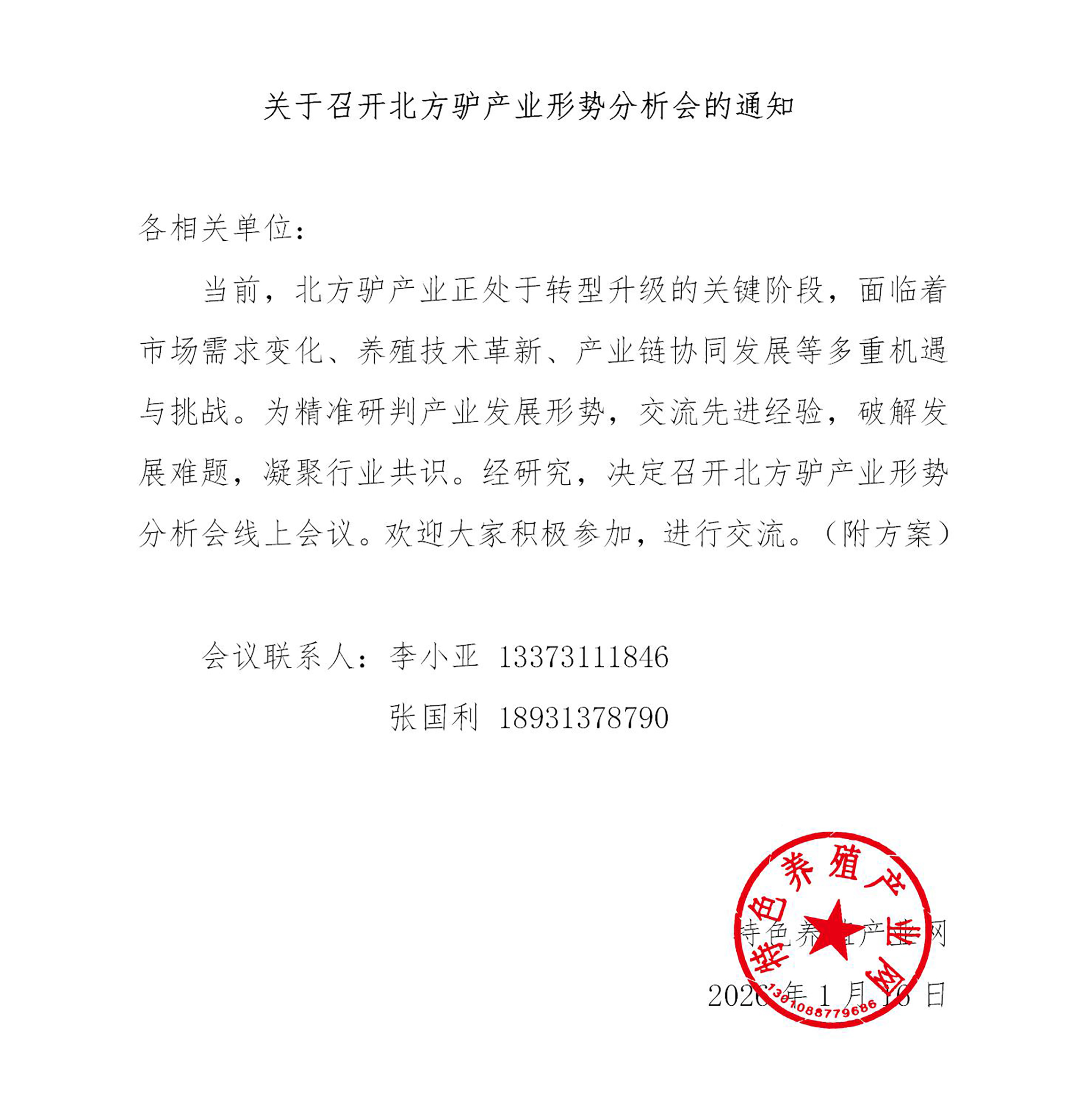 關(guān)于召開北方驢產(chǎn)業(yè)形勢分析會的通知?