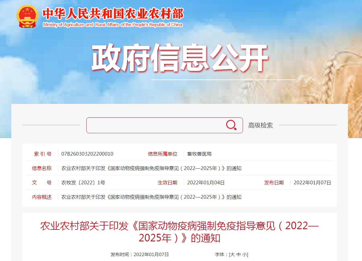 農(nóng)業(yè)農(nóng)村部7日在官網(wǎng)發(fā)布《國家動物疫病強制免疫指導(dǎo)意見(2022—2025年)》(簡稱《意見》)。其中提出,強制免疫動物疫病的群體免疫密度應(yīng)常年保持在90%以上?! ?/p>