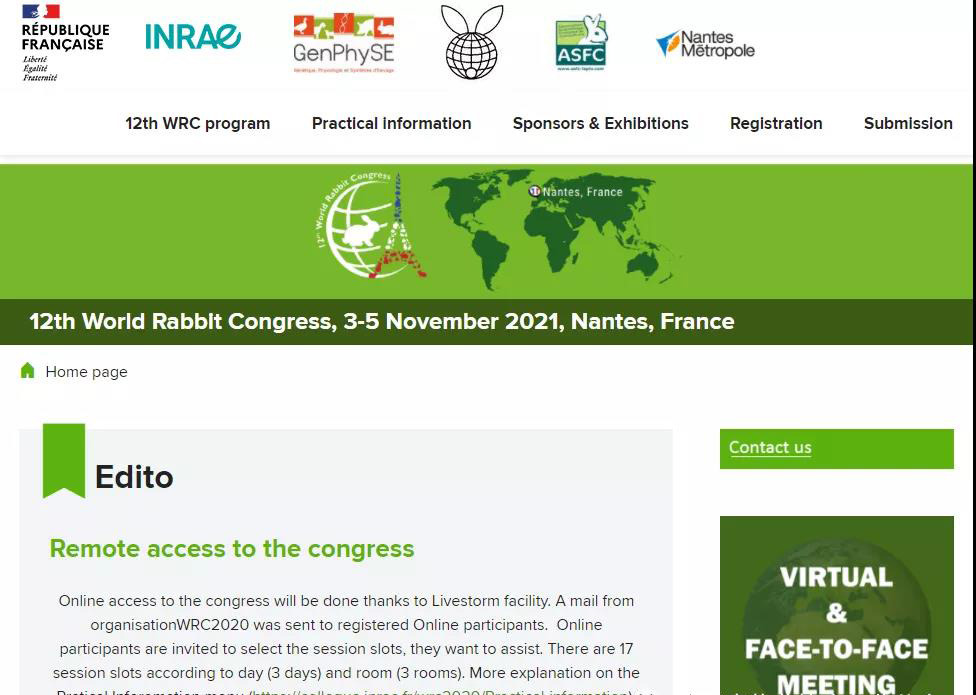 近日,第十二屆世界家兔科學大會(12th World Rabbit Congress)在法國南特市召開,此次會議由世界家兔科學學會(World Rabbit Science Association,WRSA)、法國農業(yè)食品與環(huán)