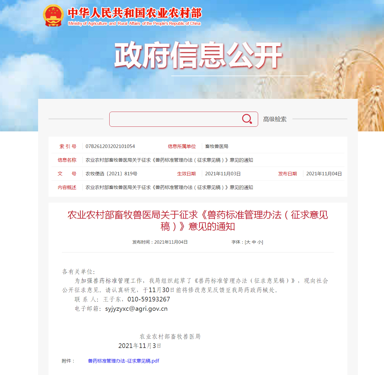 農(nóng)業(yè)農(nóng)村部畜牧獸醫(yī)局關(guān)于征求《獸藥標(biāo)準(zhǔn)管理辦法(征求意見(jiàn)稿)》意見(jiàn)的通知 各有關(guān)單位:為加強(qiáng)獸藥標(biāo)準(zhǔn)管理工作,我局組織起草了《獸藥標(biāo)準(zhǔn)管理辦法(征求意見(jiàn)稿)》,現(xiàn)向社