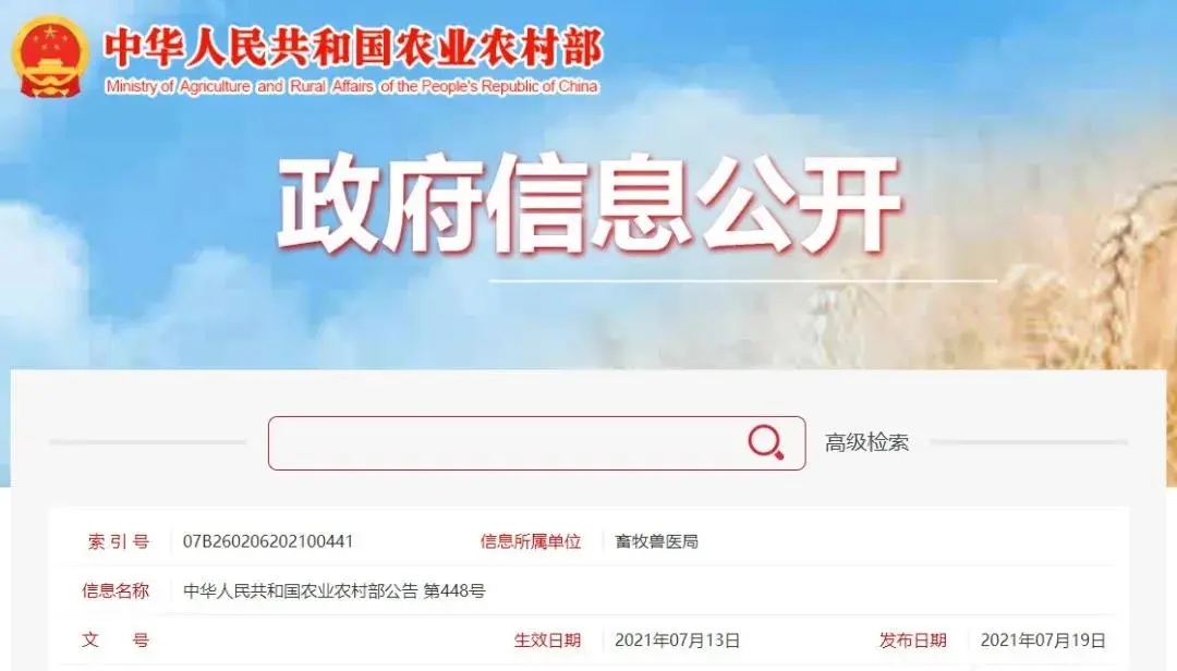 根據(jù)《獸藥管理條例》和《獸藥注冊辦法》規(guī)定,經(jīng)審查,批準美國愛德士生物科技有限公司生產(chǎn)的豬繁殖與呼吸綜合征病毒抗體檢測試劑盒等2種獸藥產(chǎn)品在我國再注冊,核發(fā)《進口