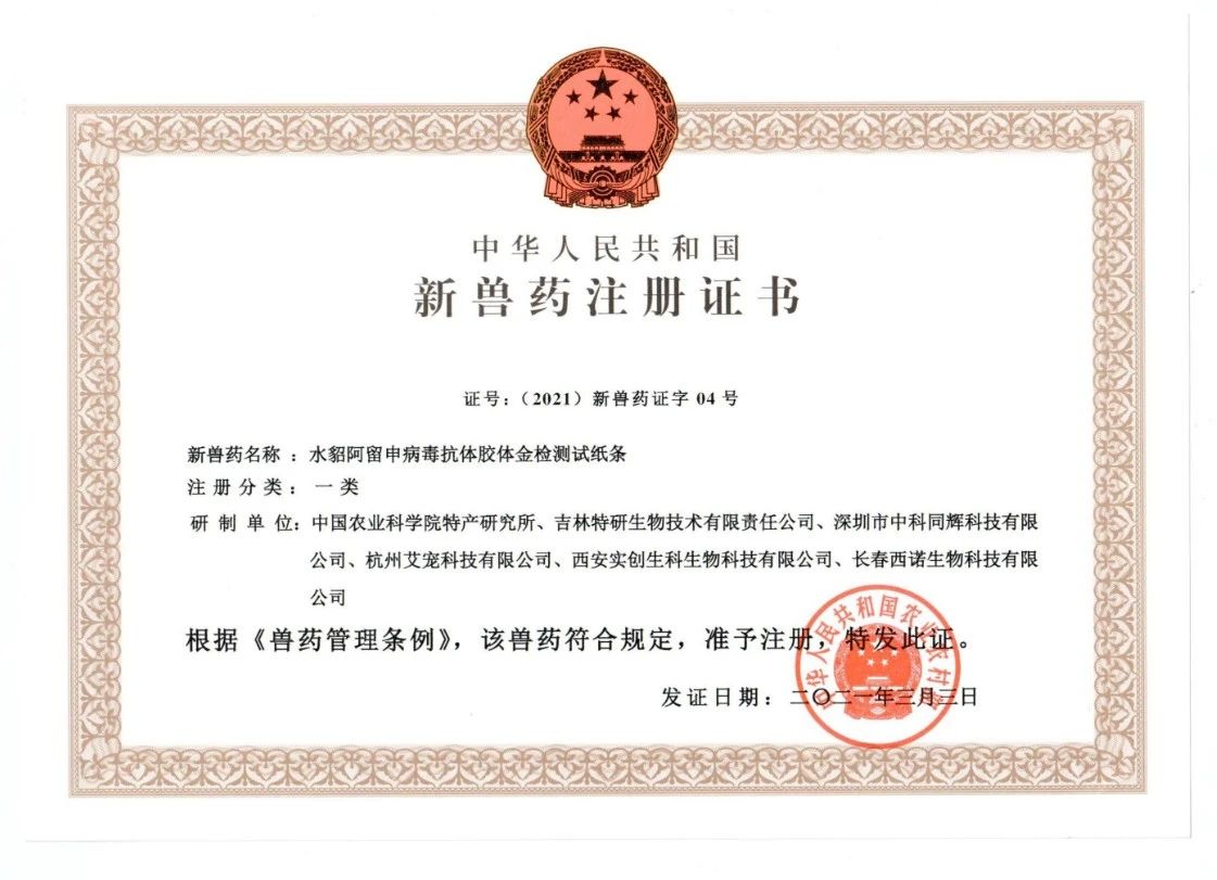 近日,中國農(nóng)業(yè)科學(xué)院特產(chǎn)研究所特種動物病原與免疫團隊、吉林特研生物技術(shù)有限責(zé)任公司聯(lián)合研發(fā)的水貂阿留申病毒抗體的新獸藥水貂阿留申病毒抗體膠體金檢測試紙條獲得國