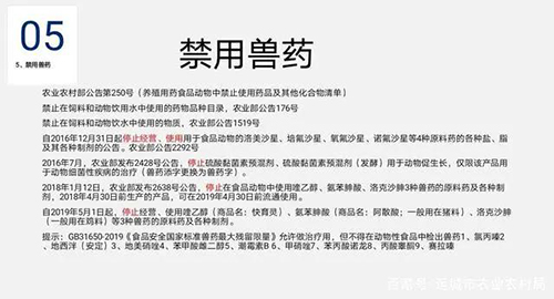中華人民共和國(guó)農(nóng)業(yè)農(nóng)村部公告第250號(hào)為進(jìn)一步規(guī)范養(yǎng)殖用藥行為,保障動(dòng)物源性食品安全,根據(jù)《獸藥管理?xiàng)l例》有關(guān)規(guī)定,我部修訂了食品動(dòng)物中禁止使用的藥品及其他化合物清單,現(xiàn)