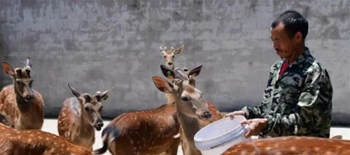 6月5日,村民在貴州省銅仁市江口縣桃映鎮(zhèn)小屯村梅花鹿養(yǎng)殖基地給梅花鹿喂食。 近年來(lái),貴州省銅仁市江口縣依托梅花鹿養(yǎng)殖產(chǎn)業(yè),按照“龍頭企業(yè)+合作社+農(nóng)戶”的經(jīng)營(yíng)