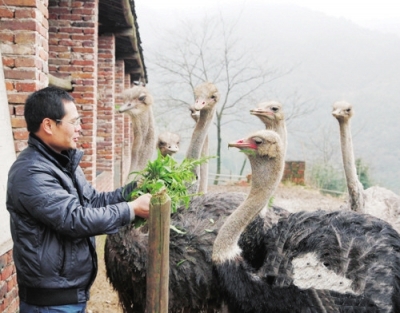 安??h山莊鄉(xiāng)荷溪村伍建明、李輝明兩村民,2013年5月回到家鄉(xiāng),在鄉(xiāng)民政所的大力幫助下,籌措資金30萬元合伙創(chuàng)辦了鴕鳥繁育物種基地。如今該基地有澳洲鴕鳥、非洲鴕鳥30只,并